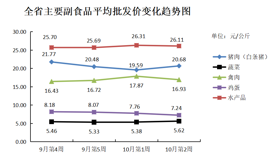 根据全省生活必需品监测系统,本周数据报告日(10月17日):