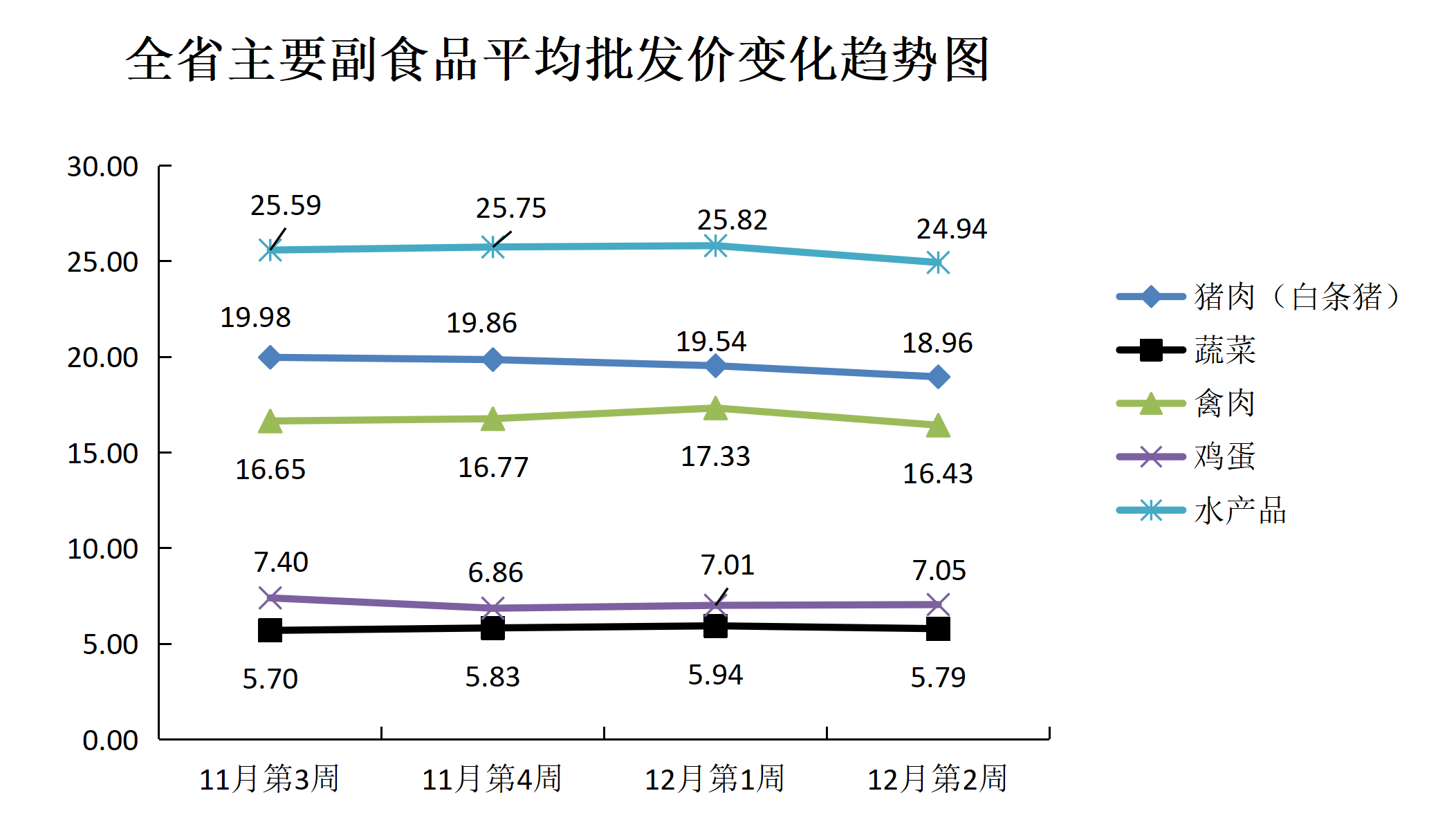 根据全省生活必需品监测系统,本周数据报告日(12月12日):