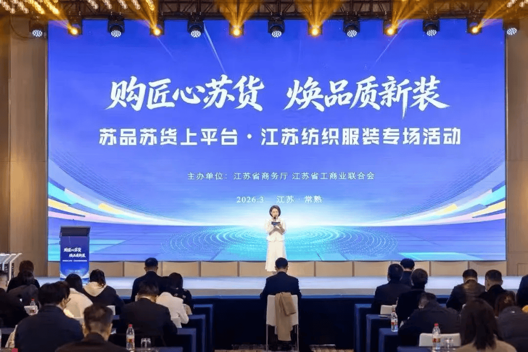 为贯彻落实省委、省政府提振消费相关工作要求,持续推动“苏品苏货”品牌培育和线上推广,助力江苏纺织服装企业提升电商竞争力,3月25日,省商务厅联合省工商联在常熟举办“购匠心苏货 焕品质新装——苏品苏货上平台·江苏纺织服装专场活动”。省商务厅、省工商联、常熟市政府、省工商联纺织服装商会、省电商协会、重点电商平台、院校、金融机构、纺织服装企业等约300人参加活动。