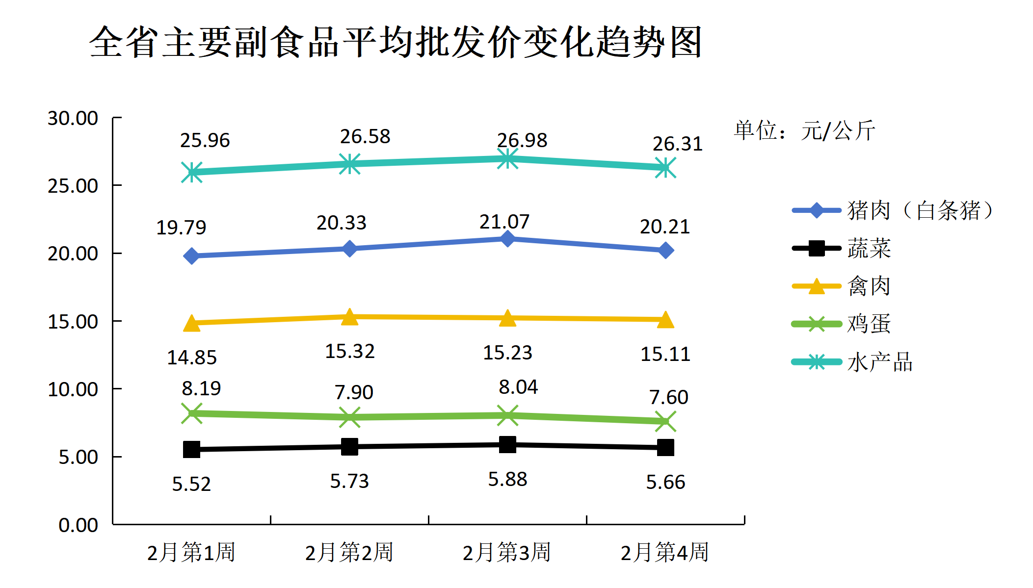 根据全省生活必需品监测系统,本周数据报告日(2月27日):