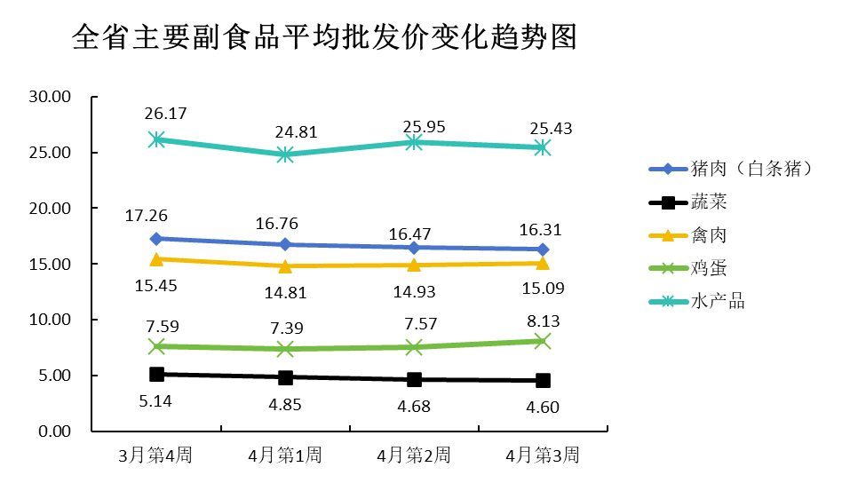 根据全省生活必需品监测系统,本周数据报告日(4月17日):