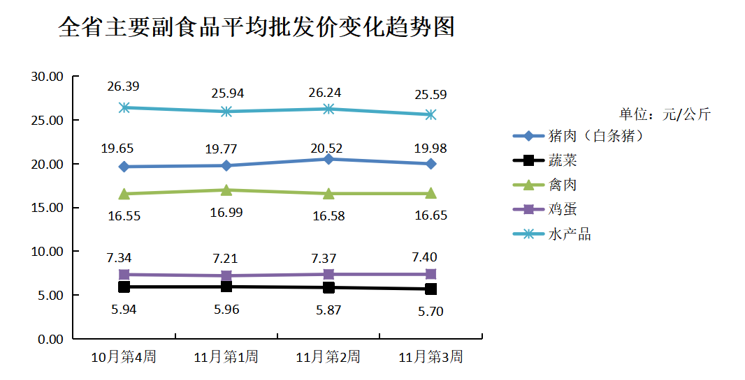 根据全省生活必需品监测系统,本周数据报告日(11月21日):