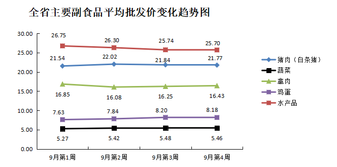 根据全省生活必需品监测系统,本周数据报告日(9月26日):