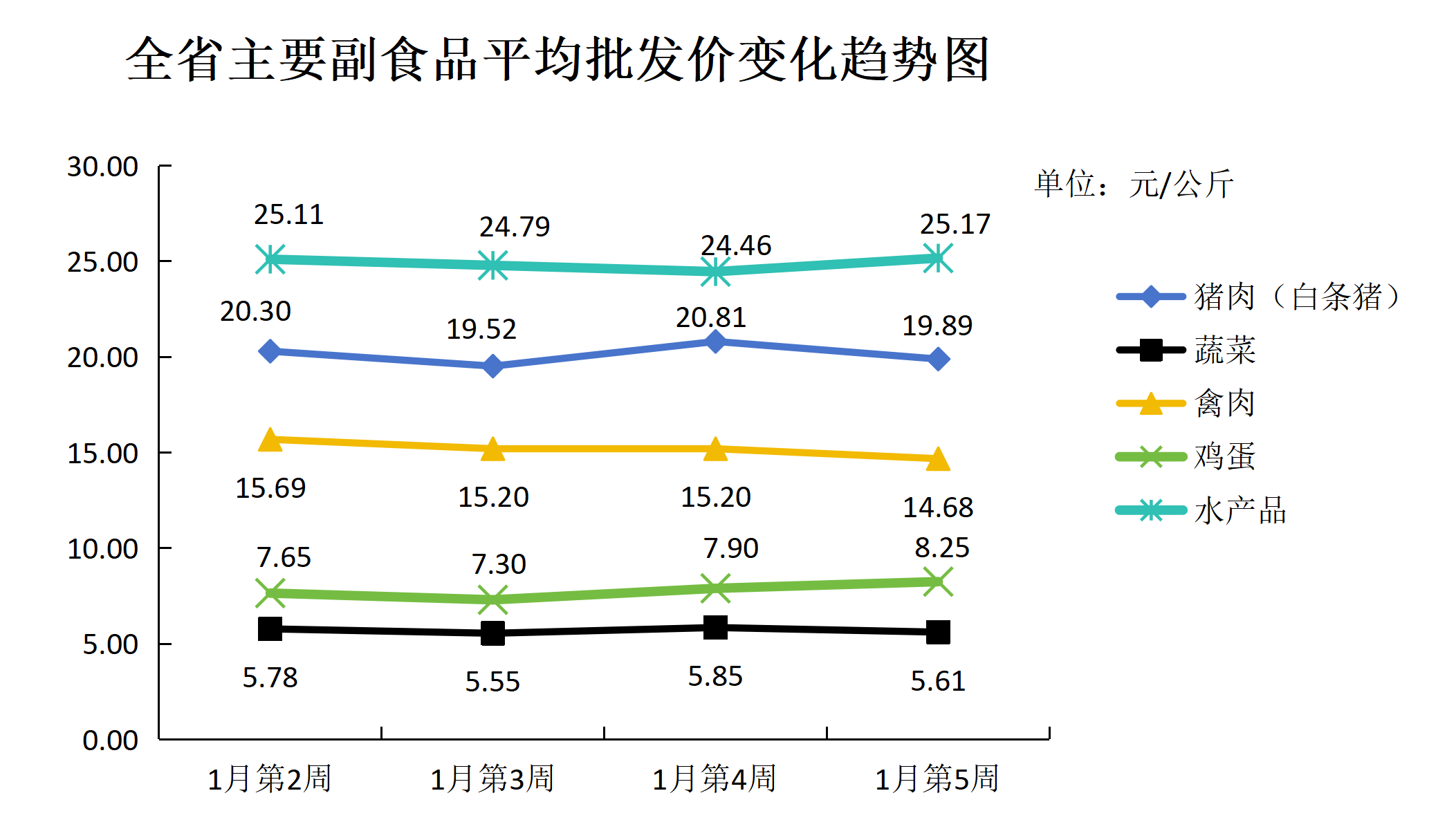 根据全省生活必需品监测系统,本周数据报告日(1月30日):