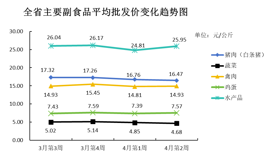 根据全省生活必需品监测系统,本周数据报告日(4月10日):